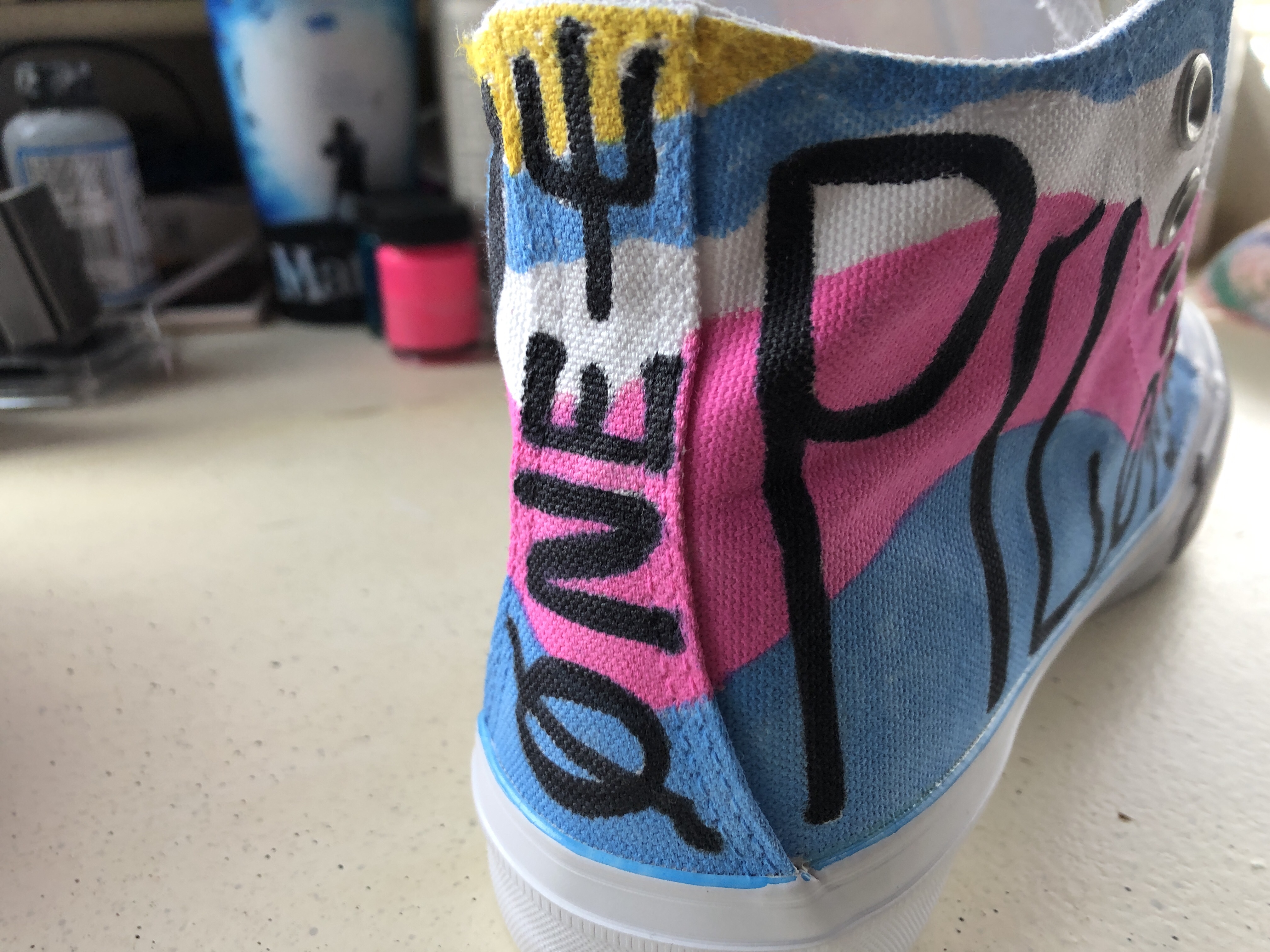 These were a fun pair to make. One of my challenges as an artist is the “less is more” concept of leaving blank space or making things a little bigger than I might think to. Very few people will be taking a microscope to these shoes to read the smaller print I painstakingly etch on. The strangest things can be the most mind blowing. So here we are. Tell me what you think!