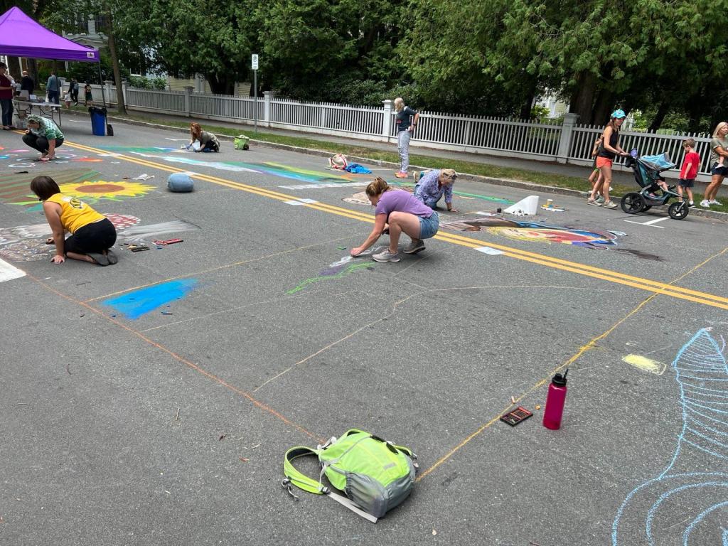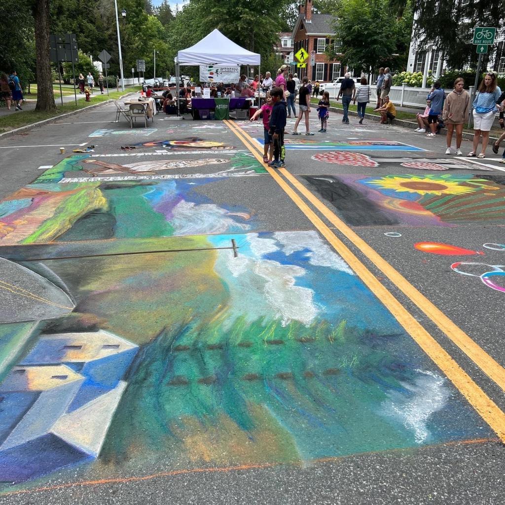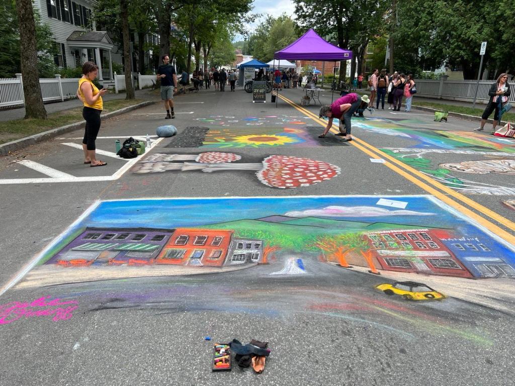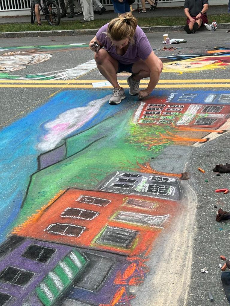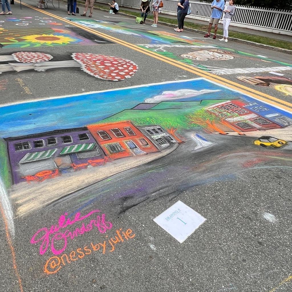 While in Woodstock, VT for a wedding of a dear friend, it turned out the town was having their annual “Taste of Woodstock” block party on the same weekend. Since we had no part in the ceremony and didn’t have to be there until 4pm, Joshy and I wandered around Elm Street only to come across a street chalk competition put on by Artistree Community Art Center. After a little convincing, I went and took a few photos of the main street, and got to work in the last open spot. I was HOURS behind the others, but I think my result after two hours was pretty sweet.