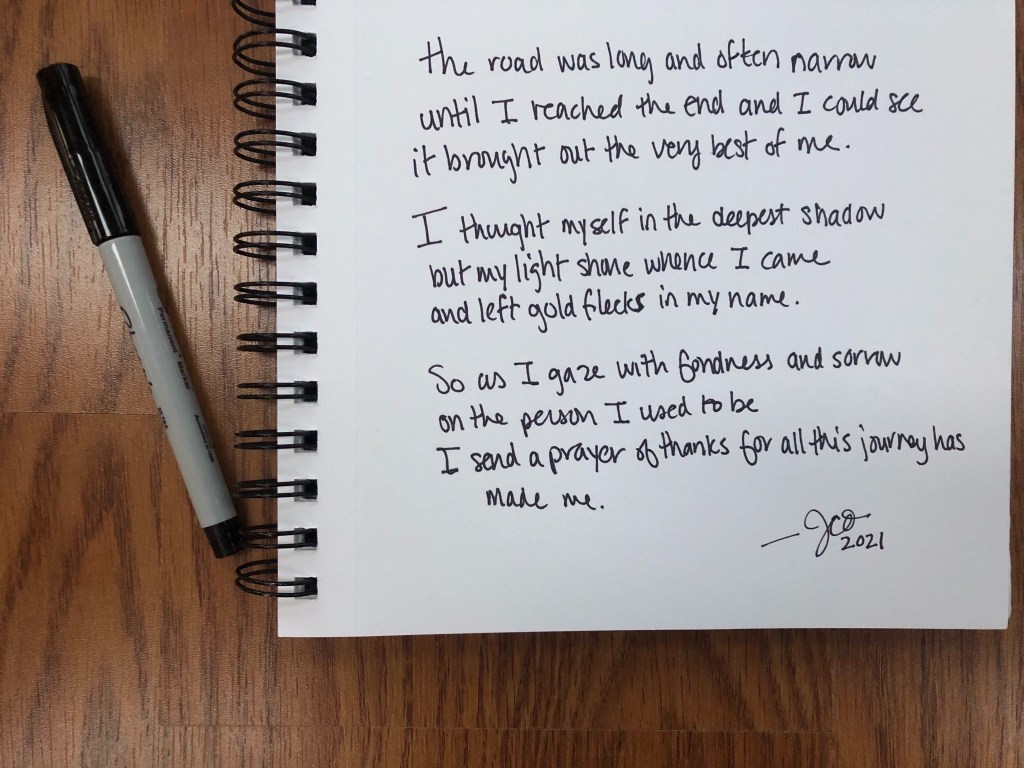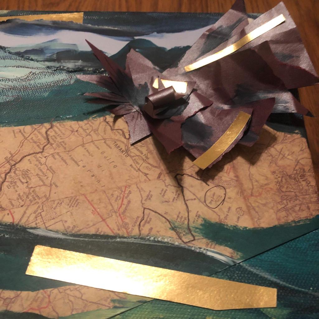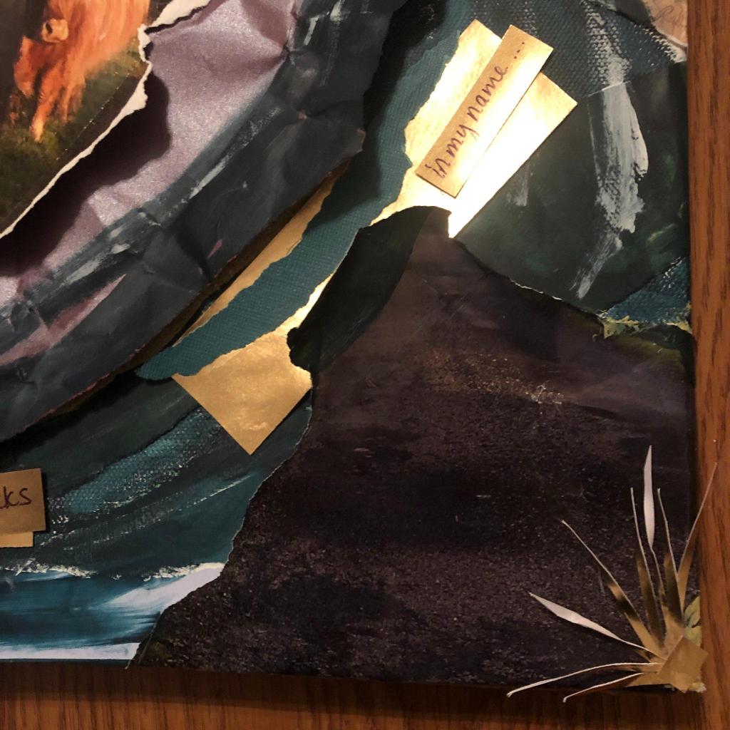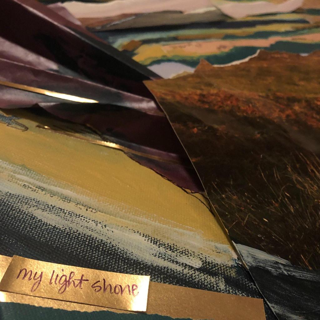 I contributed my piece called “the road was long and often narrow” that was inspired by an older photo of mine that had “aged out of competition.” I had lamented it’s age and thrown it on the floor where my son (around 8 months old at the time) crunched it up. It gave me the idea to rip it into pieces in rage, and then incorporate it into a new piece that ended up speaking to my experience going through the pandemic as a new mom and battling a newly forged road as a professional artist.